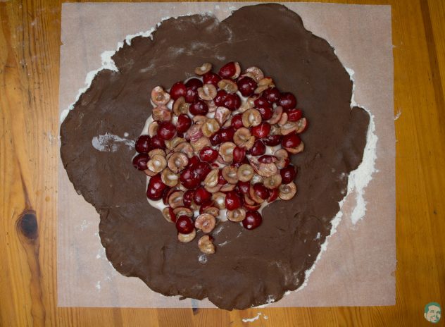 In die Mitte kommt jetzt unsere Kirschfüllung. Lasst zum Rand ca 5 cm platz.