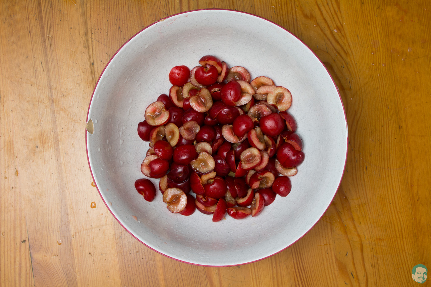 Solange unser Schoko Mürbteig ruht, können wir uns schon an die Füllung machen. Die Kirschen gründlich waschen und von den Stielen befreien.